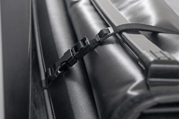 High-quality marine grade vinyl bed cover in a stylish matte black finish. Roll-up design allows quick access to cargo and full bed access quickly and conveniently. Sleek and stylish top mount cover that sits 1-1/8″ high. Corrosion resistant black powder coated aluminum frame. Spring latch closure system locks in place keeping the cover tight and noise free. Single cable pull for easy latch release and access. Heavy Duty hook and loop side closure protects cargo from the elements. No drill easy install and removal – all tools included. 5 Year Warranty.
